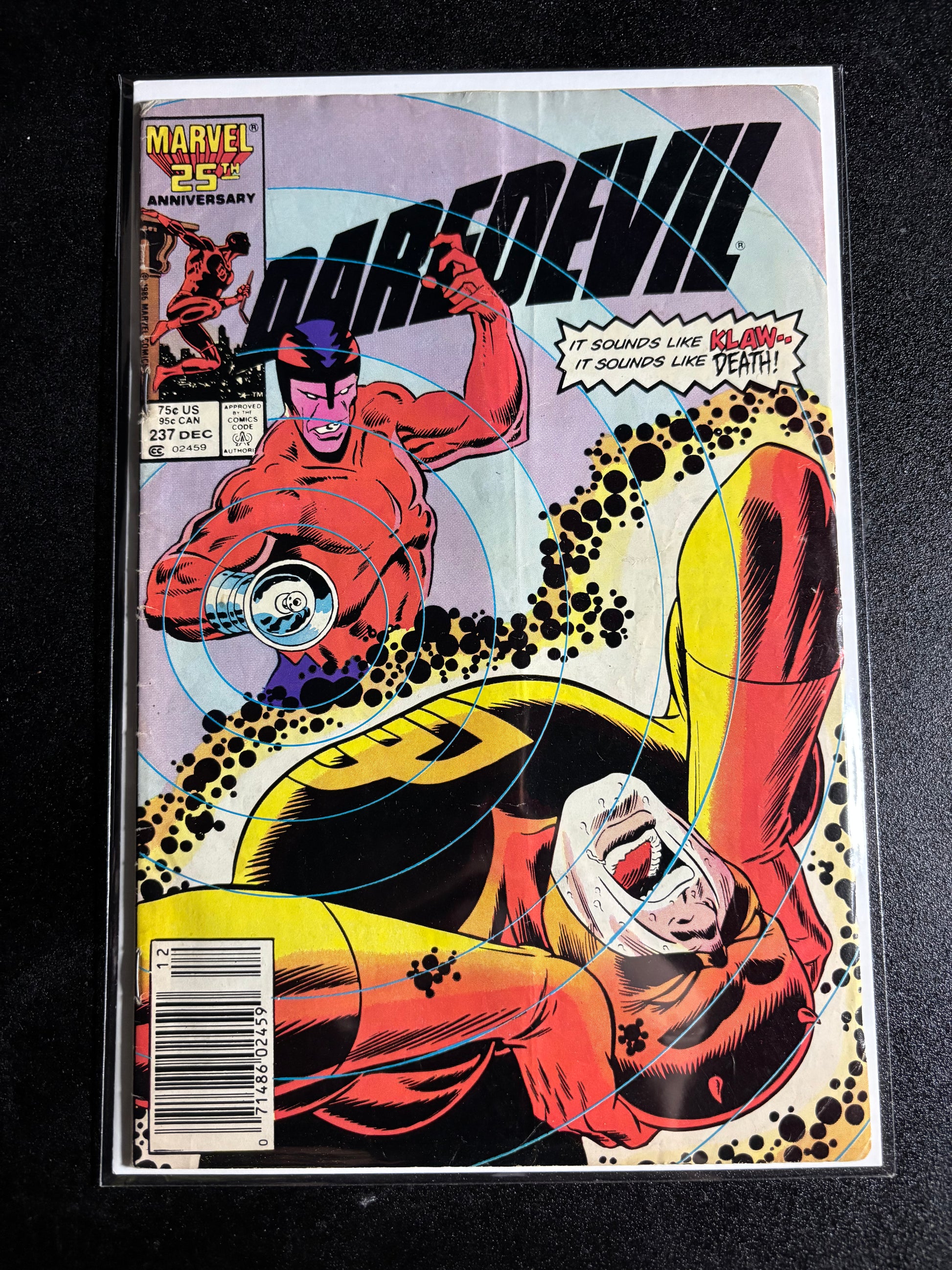 In Daredevil #237, the Man Without Fear faces off against the sonic-powered villain Klaw in “It Sounds Like Klaw... It Sounds Like Death!” This issue features a dynamic team-up with Black Panther, making it a must-have for fans of both heroes. Written by Ann Nocenti with art by Sal Buscema, this Bronze Age gem packs classic Marvel action with political undertones.