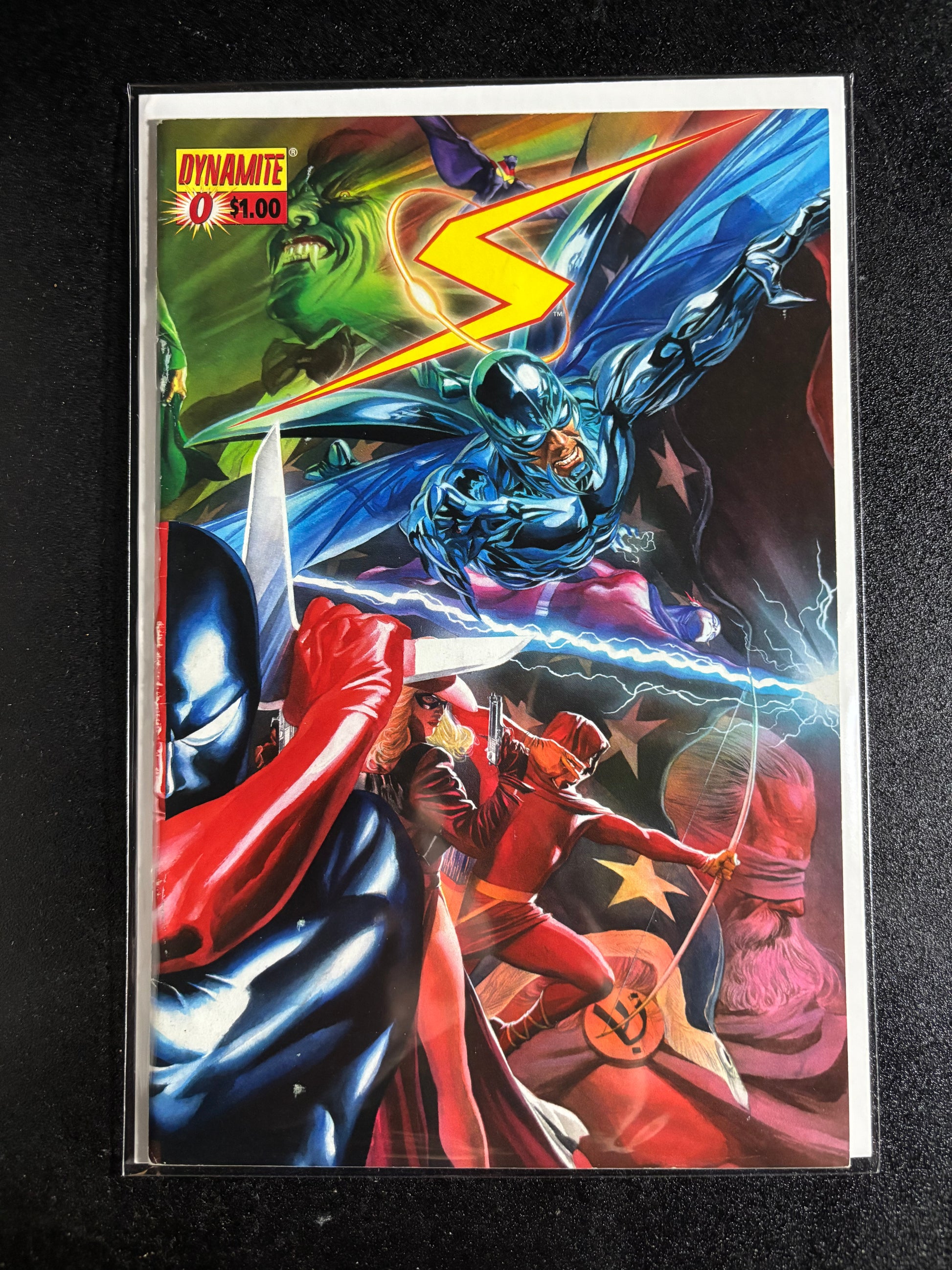 Packed with explosive action, Dynamite Comics #0 brings together a striking lineup of public domain heroes and pulp-inspired vigilantes in a special preview-format issue. Featuring dramatic painted cover art, this $1.00 entry issue offers readers a high-energy introduction to Dynamite’s expanding superhero universe.